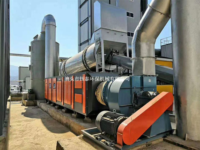 放料口瀝青煙回收處理,瀝青煙回收后采用二次燃燒處理